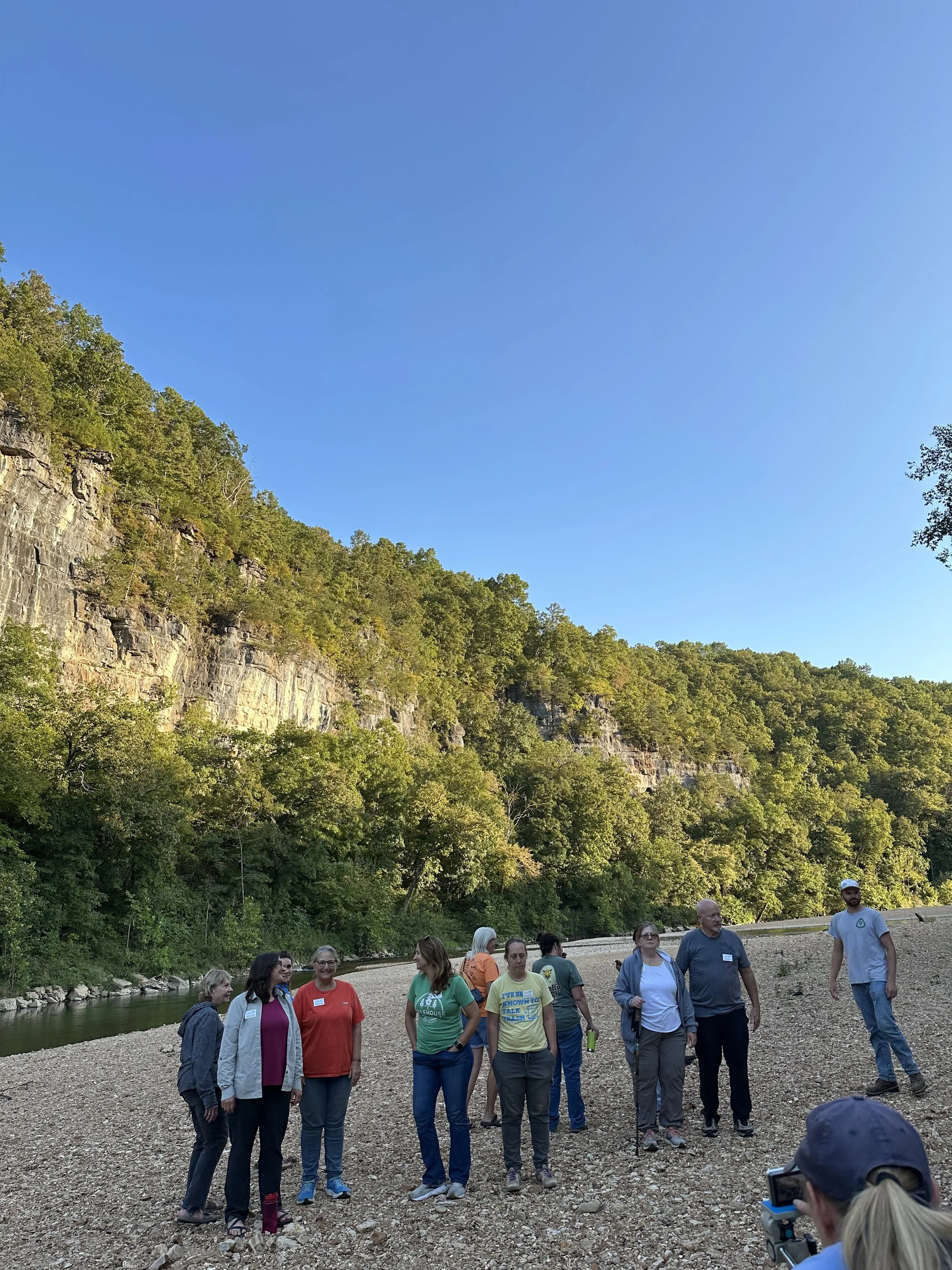A really fun hands-on /Get Wet Water Quality Monitoring session on the Jacks Fork river bank using water critter identification with Besa Schweitzer and Katie Franke, Miramiguoa Chapter members.